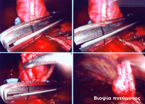 Η θωρακοσκόπηση, σε συνδυασμό με την χρήση staplers devices, δίνει στον Θωρακοχειρουργό την δυνατότητα να πάρει βιοψίες πνεύμονος προκειμένου να τεθεί άμεσα η διάγνωση, με την μεγαλύτερη δυνατή ασφάλεια για τον ασθενή.
